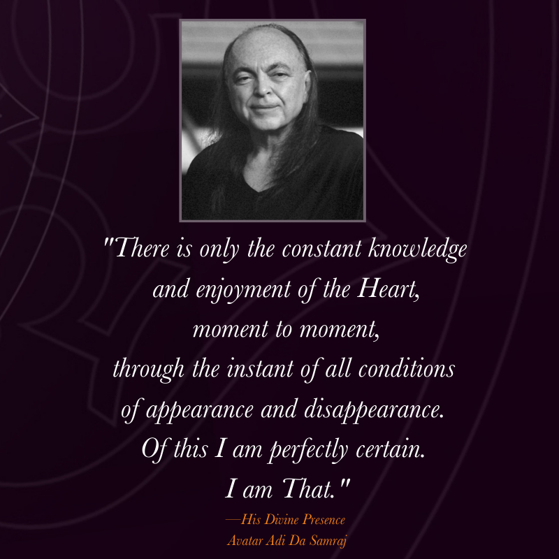 Read online or downloadWe Are Consciousness Itself contains summary Instruction from Avatar Adi Da that guides the reader through a process of noticing and considering the true nature of everything and everyone.